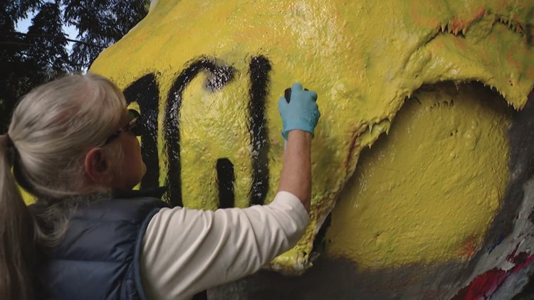 Crews plan to remove hazardous paint and soil before hauling away pieces of Bellingham Rock near I-5.
