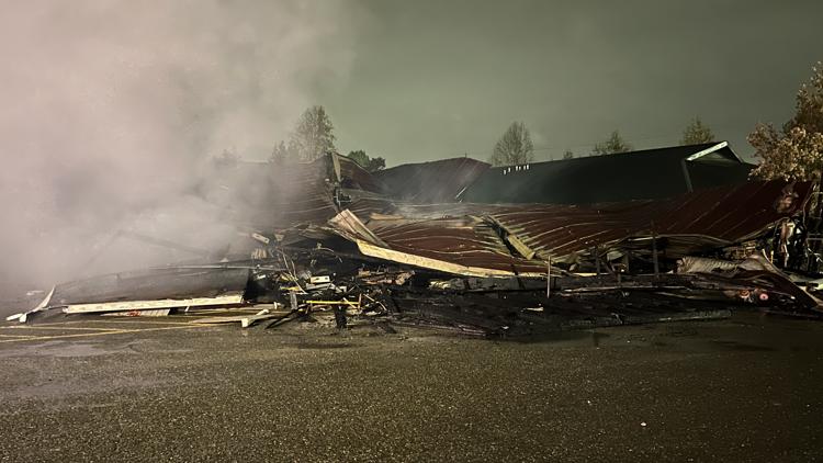 Footage taken by a KING 5 crew at the scene at the Oldcastle Infrastructure property appeared to show a structure that collapsed in the fire. Smoke was also visible about 2:30 a.m.