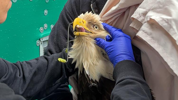PAWS said the eagle was transferred from the Whatcom Humane Society Wildlife Rehabilitation Center at the end of March after staff noticed a bill malocclusion, meaning the top and bottom parts of the bill were not lining up correctly.