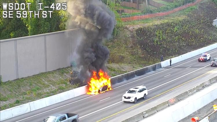 The flames could be seen spreading from the fire along the shoulder of northbound Interstate 405.